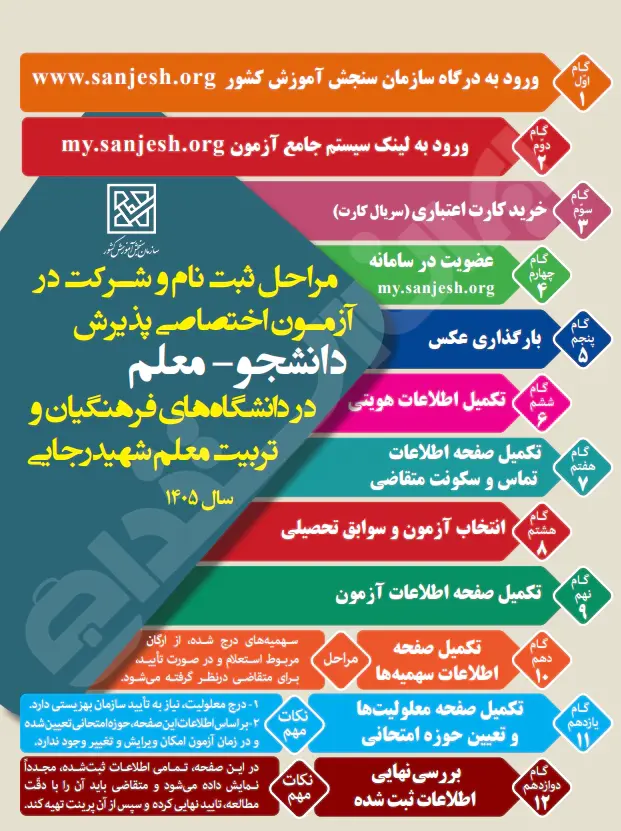 مراحل ثبتنام کنکور فرهنگیان