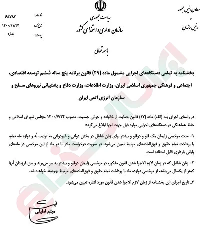 بخشنامه مرخصی زایمان به شرح زیر ارائه میگردد.