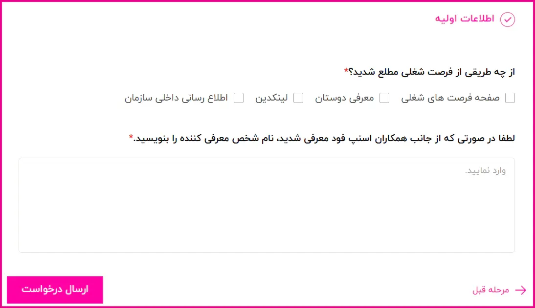 مراحل تکمیل فرم استخدام اسنپ فود