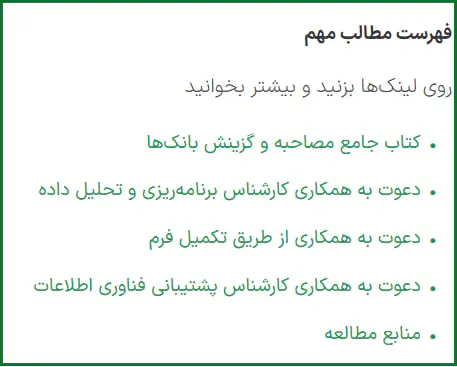 پس از ورود به صفحه اصلی استخدام بانک خاورمیانه در سایت ایران استخدام از فهرست نمایش داده شده گزینه مربوط به دعوت به همکاری را انتخاب نمایید.