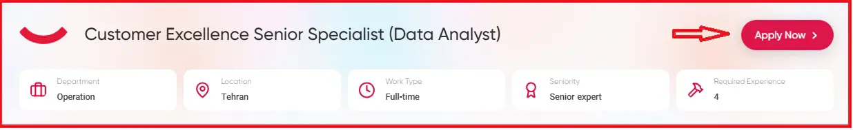 مرحله سوم: در صفحه نمایش داده شده، فرصت شغلی مدنظر خود را انتخاب کنید و پس از مطالعه شرایط احراز با انتخاب گزینه نسبت به ارسال رزومه اقدام نمایید.