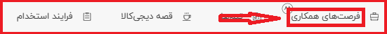 مرحله دوم: پس از ورود به صفحه «فرصتهای شغل» از گزینههای بالای صفحه «فرصتهای همکاری» را انتخاب کنید.