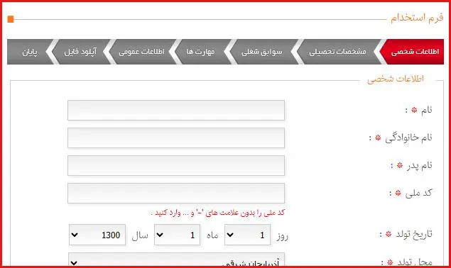 پس از ورود به صفحه استخدام، اطلاعات شخصی خود را به دقت وارد کرده و سپس بر روی دکمه «بعدی» کلیک کنید.