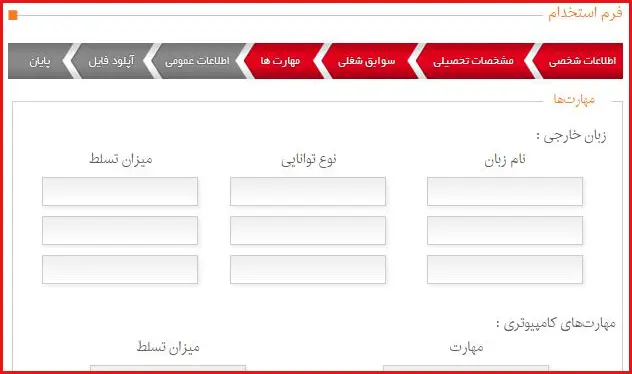 برای تکمیل فرم استخدام، روی دکمه زیر کلیک نمایید.