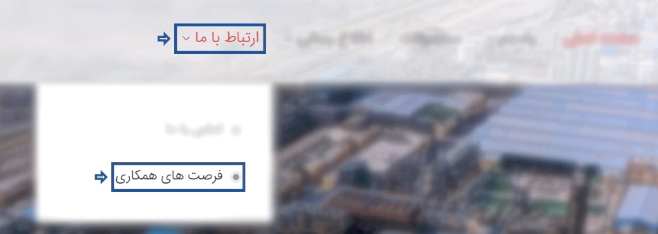 پس از ورود به سایت اصلی این شرکت از نوار بالای صفحه، گزینه "ارتباط با ما" را انتخاب کرده و در منوی بازشده، روی "فرصتهای همکاری" کلیک نمایید.