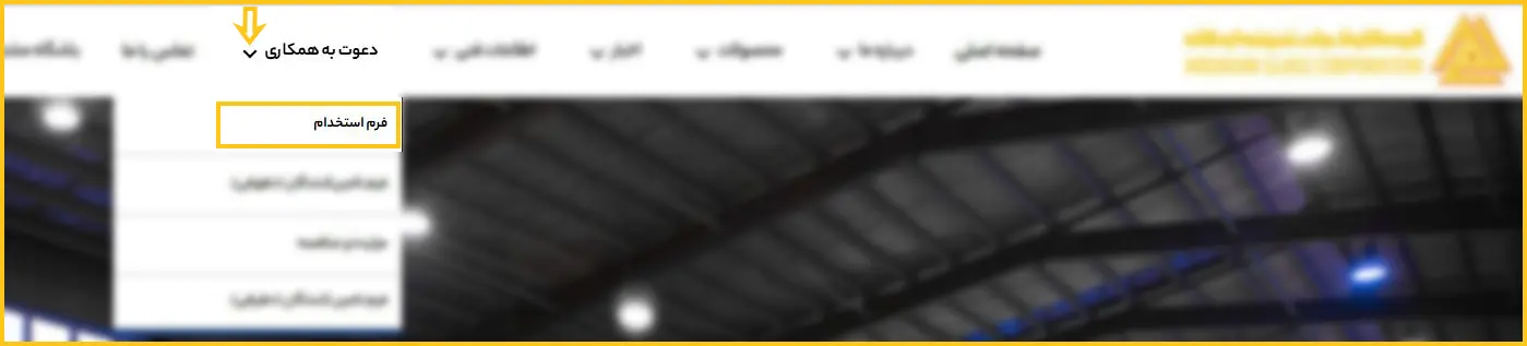 پس از ورود به صفحه اصلی کارخانجات شیشه اردکان، از منوی بالای سایت گزینه «دعوت به همکاری» را انتخاب کرده و سپس روی گزینه «فرم استخدام» کلیک نمایید.