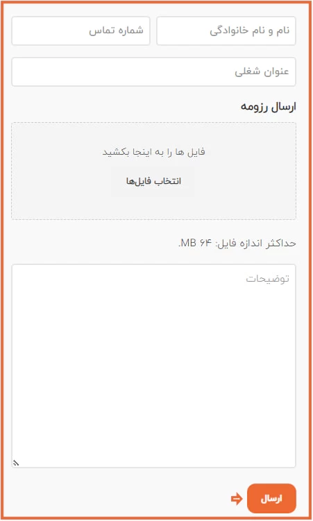 برای شروع ارسال رزومه، روی دکمه زیر کلیک نمایید.