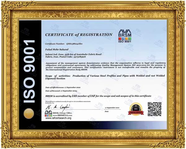 - گواهینامه سیستم مدیریت کیفیت ایزو 9001