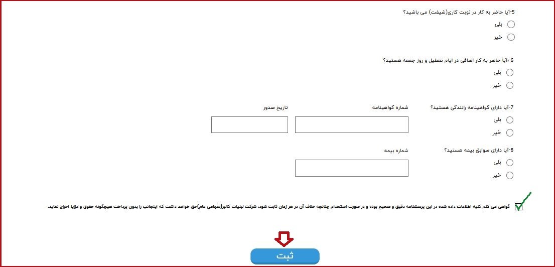 تکمیل فرم استخدام شرکت کالبر