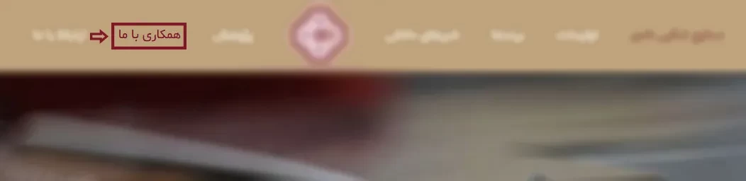پس از ورود به سایت اصلی این شرکت، همانند تصویر زیر از نوار بالای صفحه، روی گزینه "همکاری با ما" کلیک نمایید.