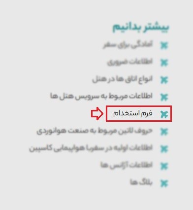 در صفحه اصلی سایت، بخشهای مختلفی برای خدمات مسافری و اطلاعرسانی مشاهده میکنید. در میان این بخشها، تصویری با عنوان «استخدام» وجود دارد که معمولاً در نیمه پایین صفحه قرار گرفته است. با کلیک روی این گزینه، به صفحهی ویژهی استخدام منتقل خواهید شد که باید اطلاعات فردی و هویتی و.. خود را وارد کرده و فرم را ارسال نمایید.