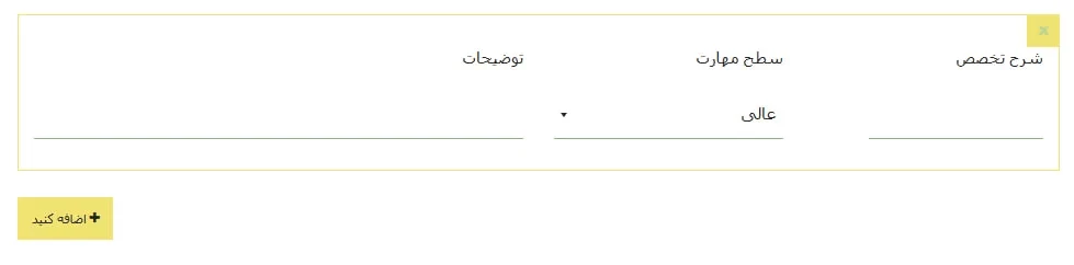 در این بخش باید اطلاعات مربوط به مهارتهایی که دارید را وارد نمایید.