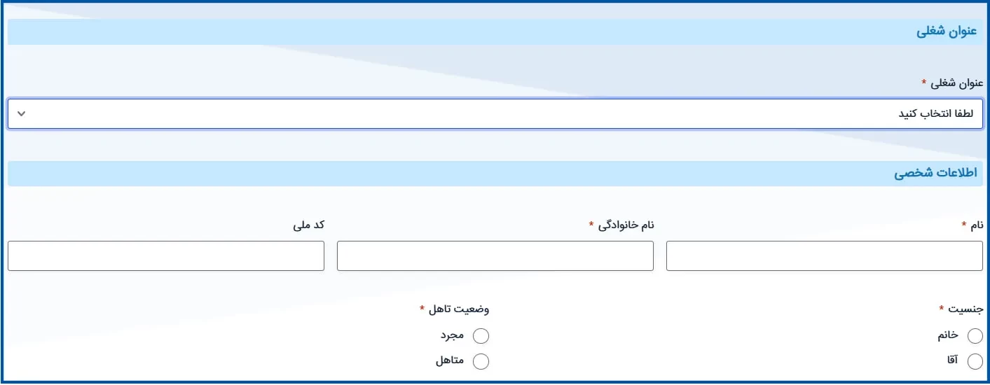 مرحله دوم: انتخاب عنوان شغلی و تکمیل اطلاعات هویتی