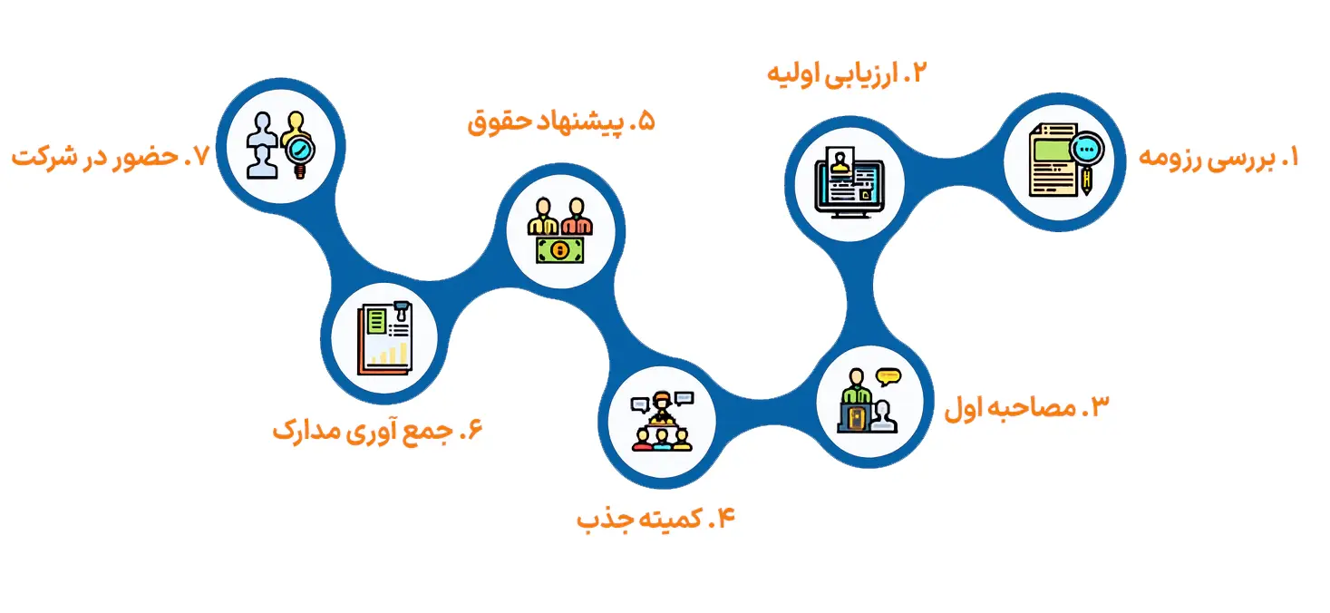 مراحل استخدام شرکت کروز به ترتیب زیر است: