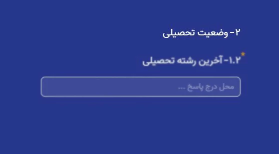 مرحله اول (بخش دوم): در اولین مرحله از بخش دوم فرم استخدام، باید اطلاعات مربوط به "آخرین رشته تحصیلی" خود را وارد نمایید. در کادر مشخص شده، رشته تحصیلی خود را به صورت کامل وارد کنید (برای مثال: مهندسی صنایع، مدیریت، یا علوم کامپیوتر و..)