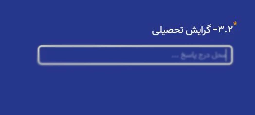 در سومین مرحله از بخش دوم فرم استخدام، باید "گرایش تحصیلی" خود را وارد نمایید. در کادر مشخص شده، گرایش تحصیلی مرتبط با رشته خود را تایپ کنید. به عنوان مثال: گرایش قدرت (برای رشته مهندسی برق)، گرایش مالی (برای رشته حسابداری).