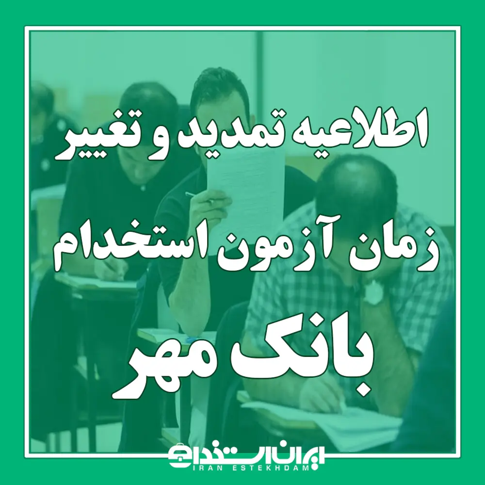 اطلاعیه تمدید و تغییر زمان آزمون استخدام بانک مهر ۱۴۰۴