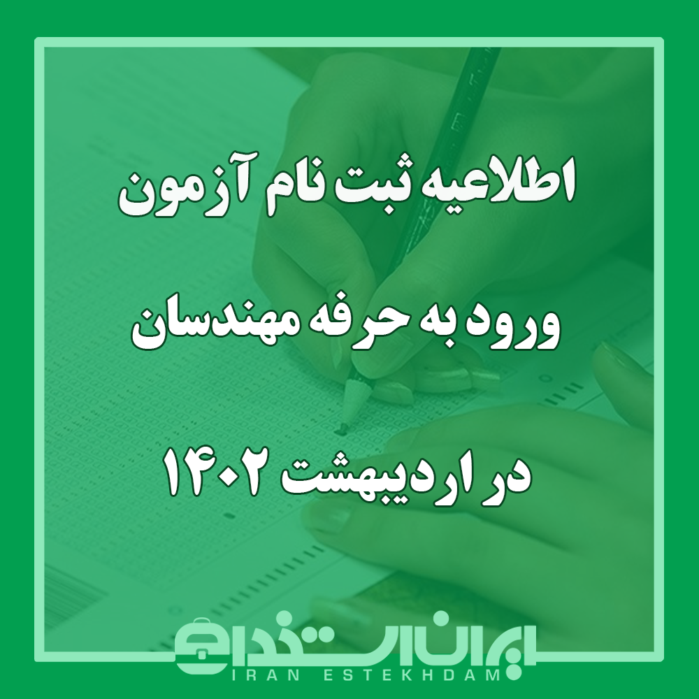 اطلاعیه ثبت نام آزمون ورود به حرفه مهندسان در اردیبهشت ۱۴۰۲
