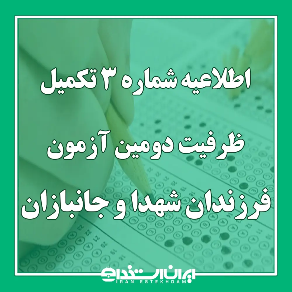اطلاعیه شماره ۳ تکمیل ظرفیت دومین آزمون استخدام فرزندان شهدا و جانبازان
