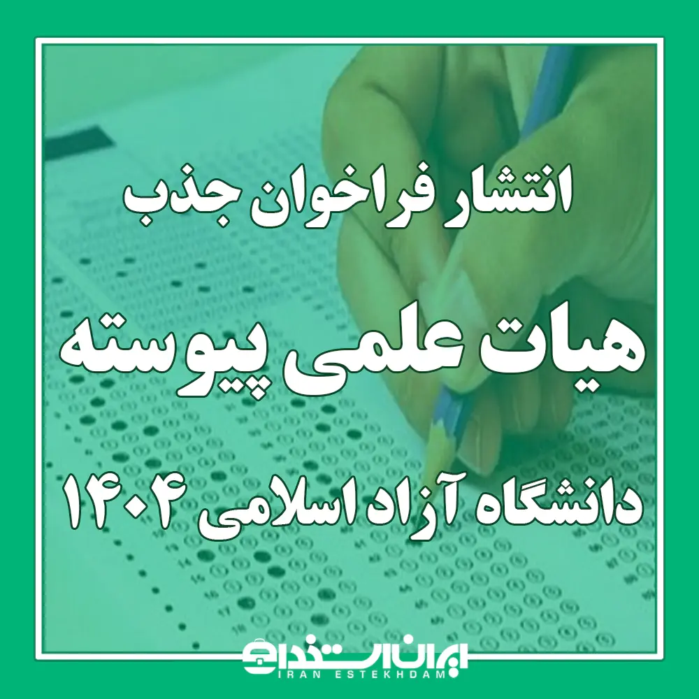 ضمن آرزوی موفقیت سایت ایران استخدام برای یکایک شما کاربران گرامی به اطلاع می رسانیم؛ فراخوان فراخوان جذب اعضای هیأت علمی پیوسته نوبت دوم سال ۱۴۰۴ دانشگاه آزاد اسلامی منتشر و ثبت نام آغاز شد.