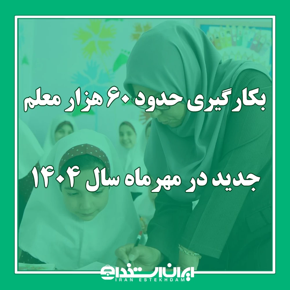بکارگیری حدود ۶۰ هزار معلم جدید در مهرماه سال ۱۴۰۴