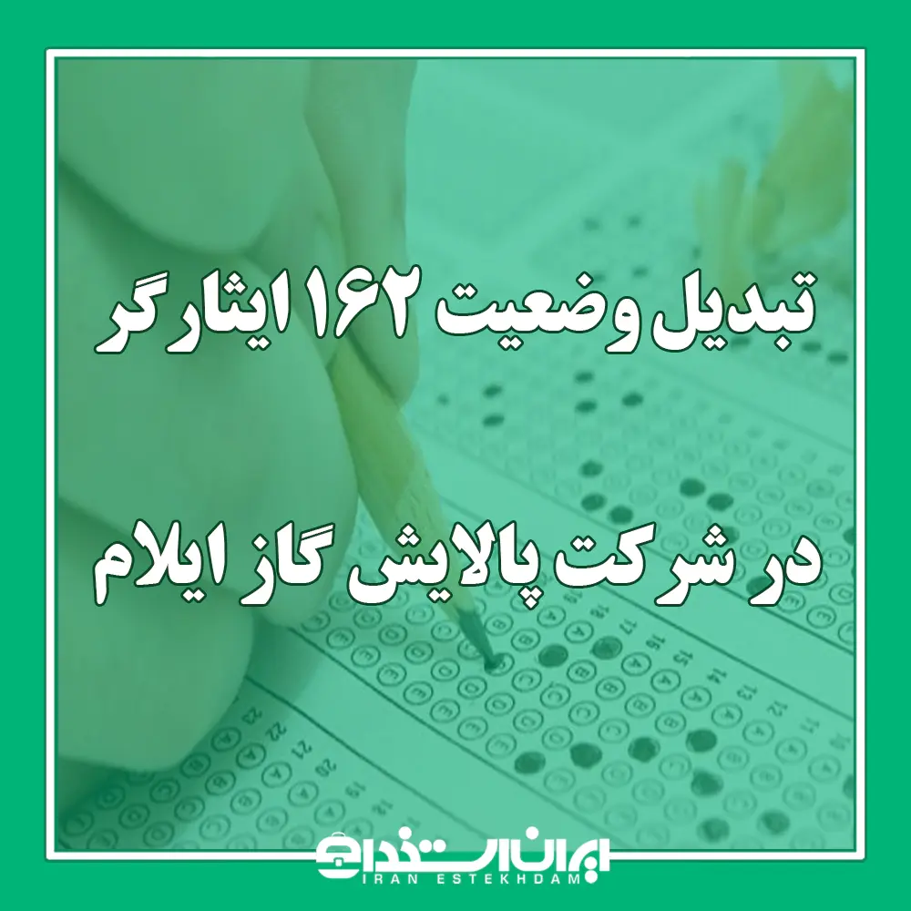 رئیس روابط عمومی شرکت پالایش گاز ایلام از تبدیل وضعیت استخدامی ۱۶۲ نیروی ایثارگر از حالت پیمانکاری و قراردادی به رسمی قطعی در این شرکت خبر داد.