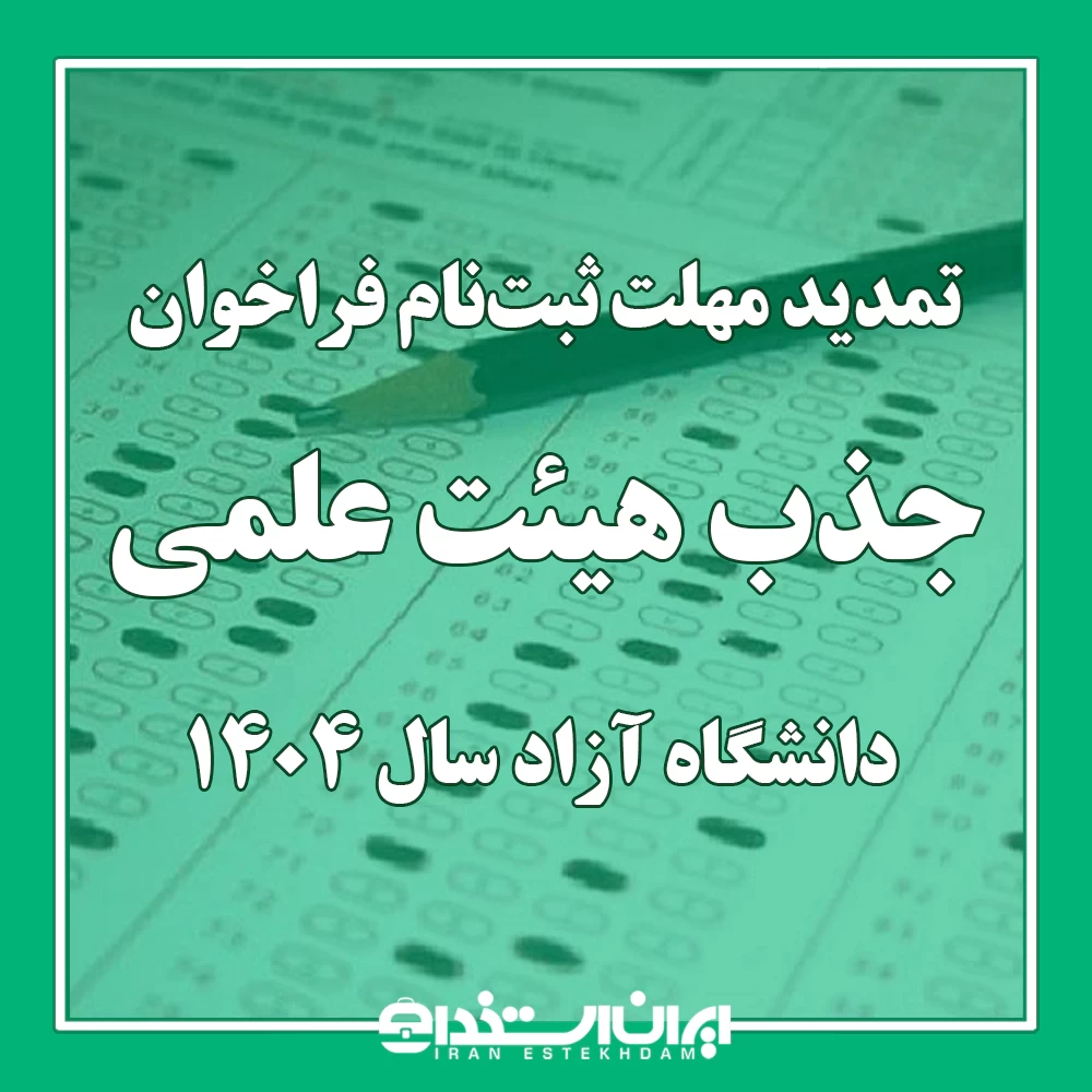 دانشگاه آزاد اسلامی مهلت ثبتنام فراخوان جذب هیئت علمی نوبت اول ۱۴۰۴ را به دلیل استقبال گسترده متقاضیان و تعطیلات تابستانی تا ۱۰ شهریورماه تمدید کرد.