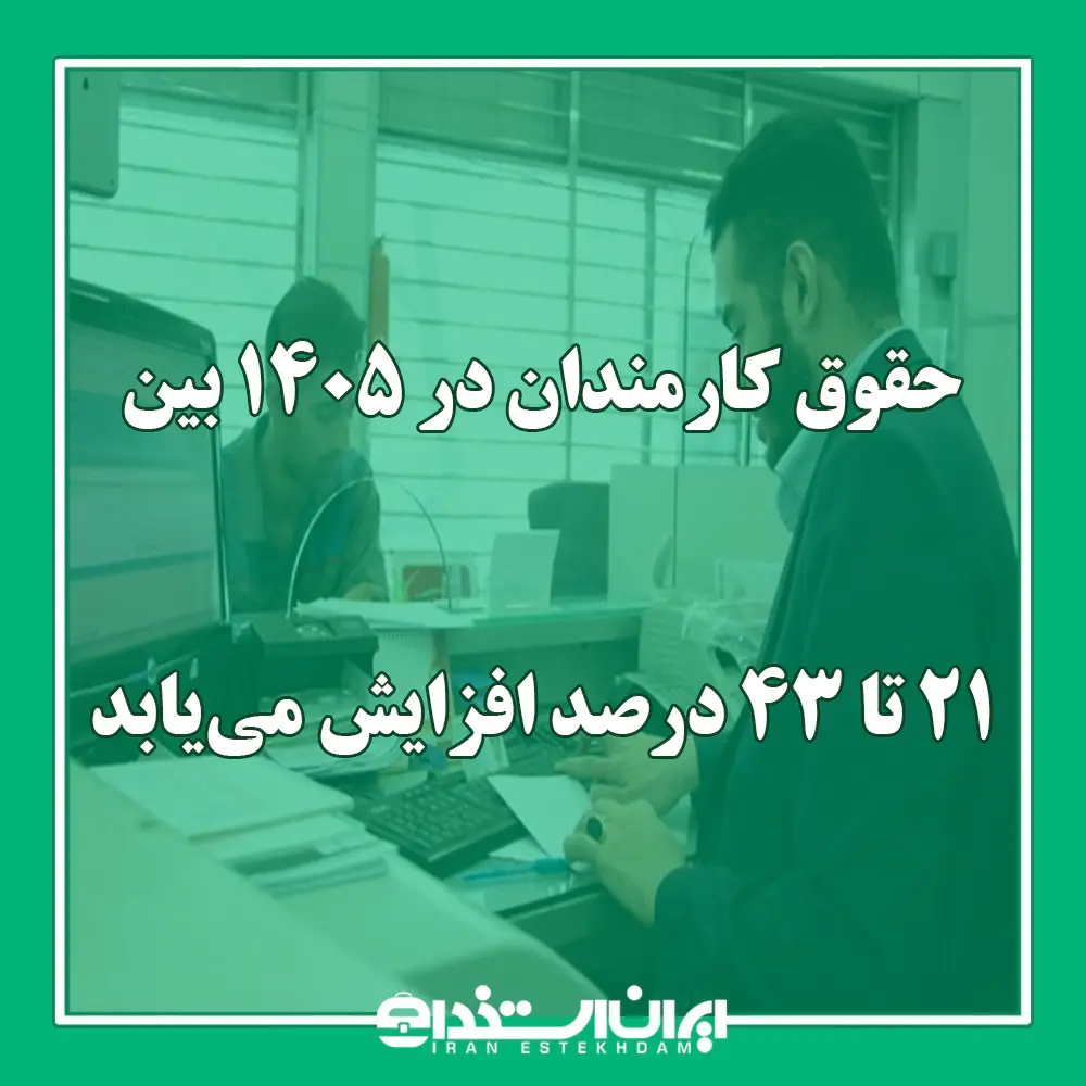حقوق کارمندان در ۱۴۰۵ بین ۲۱ تا ۴۳ درصد افزایش می یابد