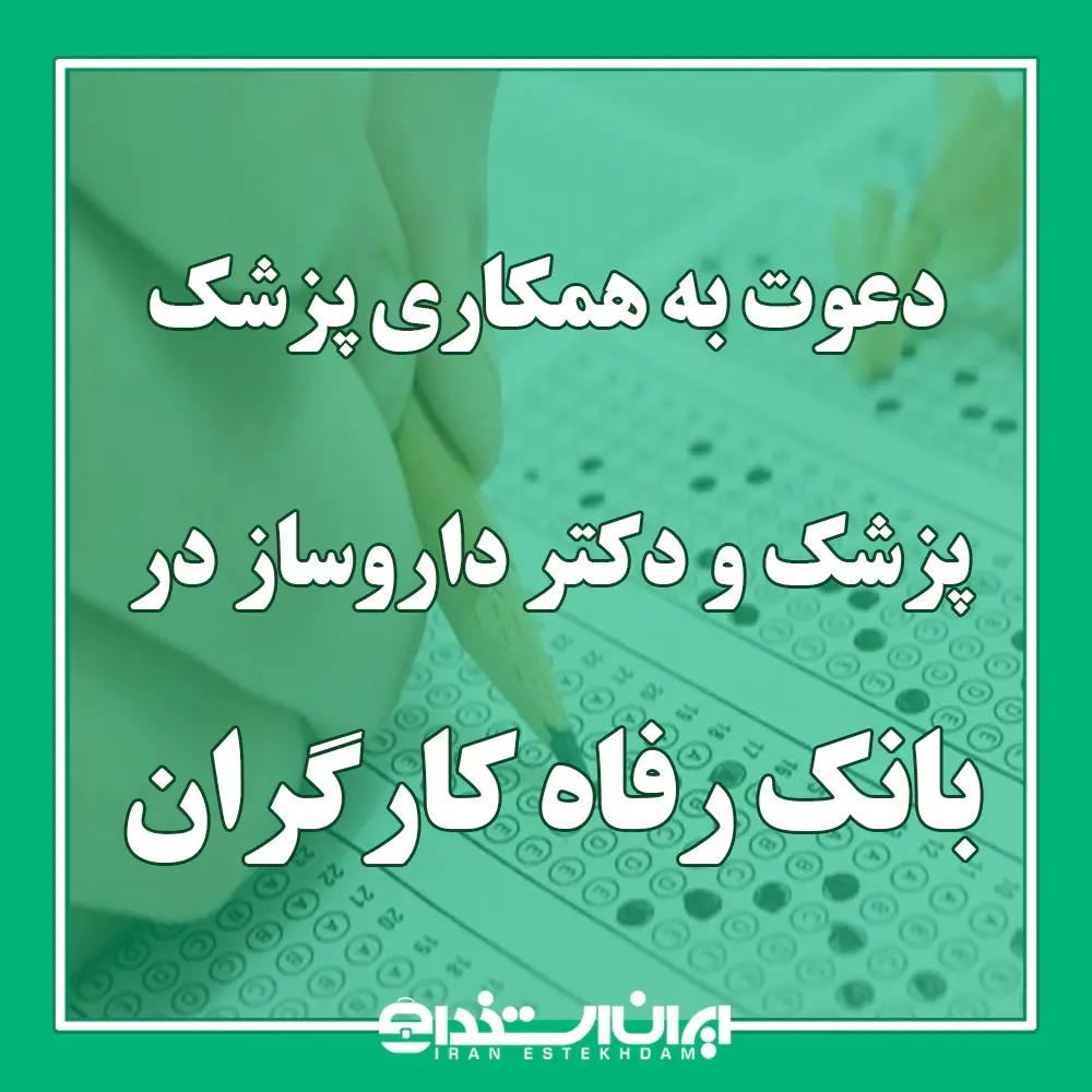 دعوت به همکاری پزشک و دکتر داروساز در بانک رفاه کارگران ۱۴۰۴