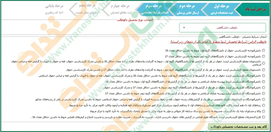 راهنمای تصویری ثبت نام آزمون قضاوت
