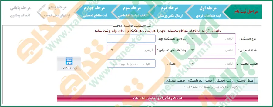 مرحله پنجم: ثبت اطلاعات تحصیلی