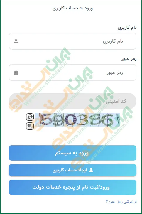 در این مرحله لازم است نام کاربری و رمز عبور خود را وارد کرده، کد امنیتی نمایش داده شده را ثبت کنید و سپس روی دکمه "ورود به سیستم" کلیک نمایید.