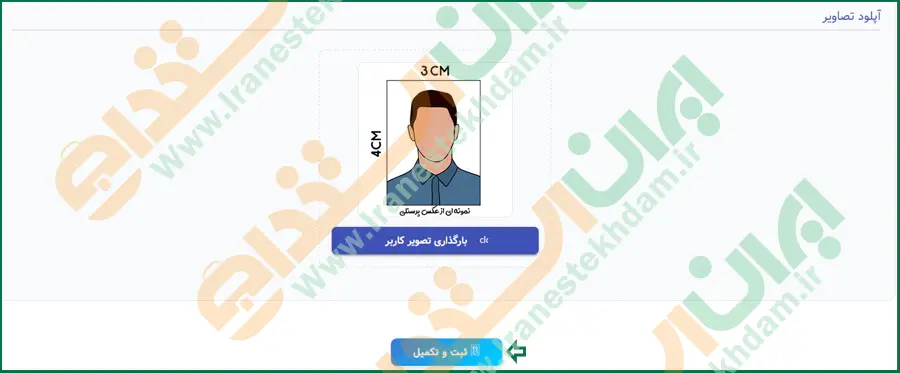 در این قسمت تصویر خود را در بخش مربوطه بارگذاری کرده و روی دکمه "ثبت و تکمیل" کلیک نمایید.