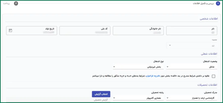 مرحله ششم: ثبت اطلاعات شخصی، شغلی و تحصیلی