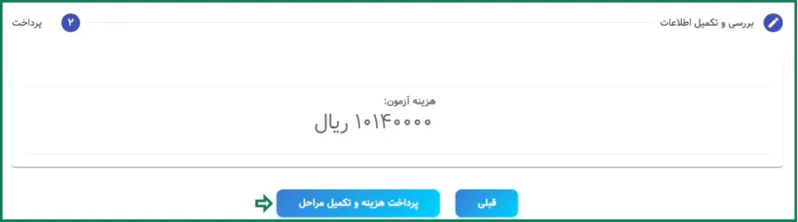پس از کلیک روی گزینه ثبت، لازم است روی گزینه "پرداخت هزینه و تکمیل مراحل" کلیک نمایید.