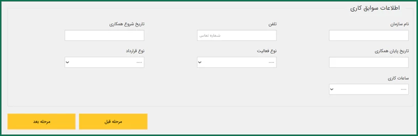 مرحله دوازدهم: ثبت اطلاعات سوابق کاری