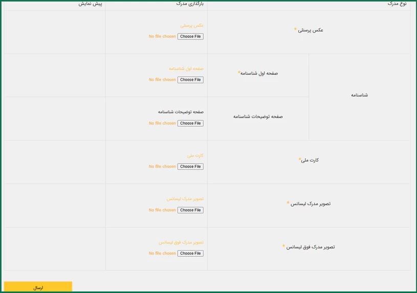 مرحله سیزدهم: بارگذاری مدارک و مستندات