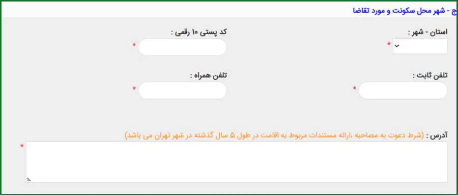 بخش سوم: ثبت اطلاعات محل سکونت و تماس