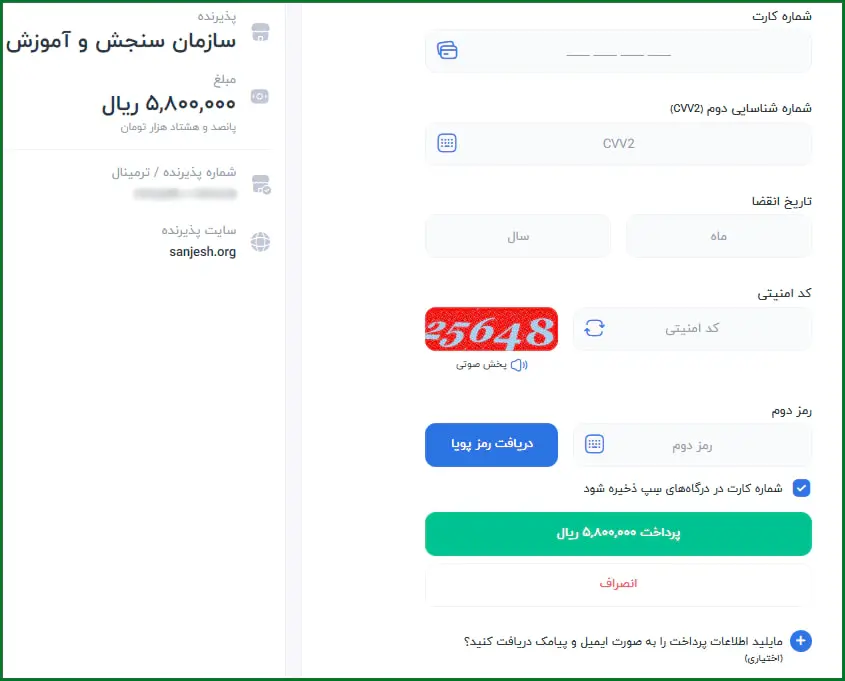 در این مرحله وارد صفحه پرداخت الکترونیکی میشوید و باید هزینه ثبت نام خود را پرداخت نمایید.