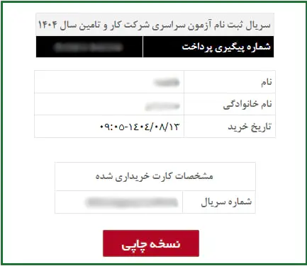 پس از پرداخت هزینه ثبت نام، یک شماره سریال اختصاصی برای شما نمایش داده میشود که باید آن را ذخیره کنید.