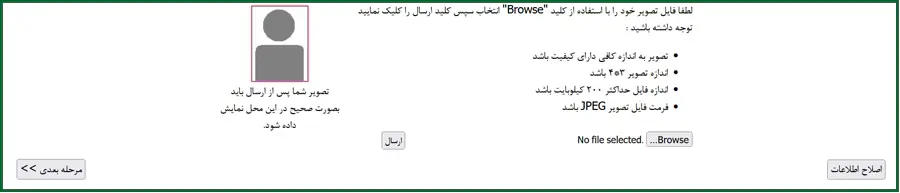در این مرحله باید روی دکمه Browse کلیک کرده و تصویر خود را انتخاب کنید سپس روی دکمه "ارسال" کلیک نمایید.
