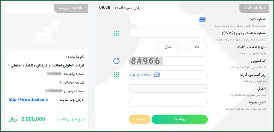 در مرحله نهایی وارد صفحه پرداخت الکترونیکی میشوید و باید هزینه ثبت نام خود را پرداخت نمایید.