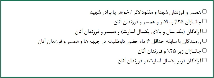 در صورت داشتن سهمیه ایثارگری، باید گزینه مربوط به وضعیت خود را انتخاب نمایید.