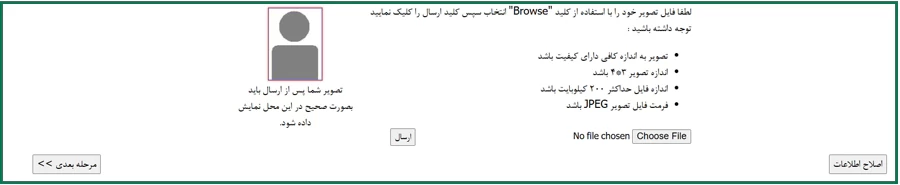 در این مرحله تصویر خود را با توجه به شرایط ذکرشده بارگذاری نمایید.