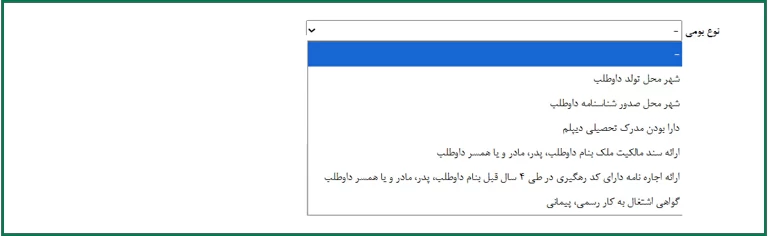 در این بخش باید نوع بومیبودن خود را از بین گزینههای موجود مشخص نمایید.