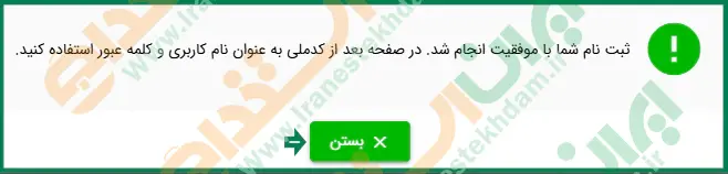 پس از وارد کردن اطلاعات، پیغامی مشابه تصویر زیر نمایش داده میشود که پس از بررسی، باید روی دکمه "بستن" کلیک نمایید.