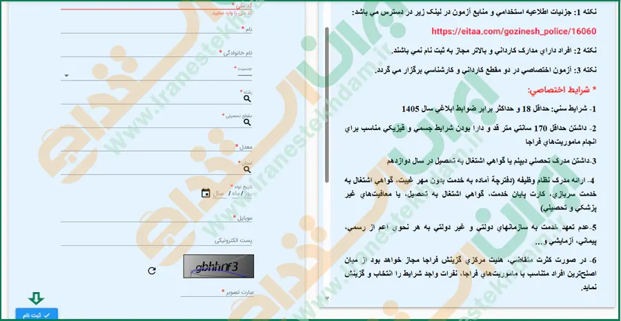 راهنمای گام به گام ثبت نام آزمون استخدام افسری محصل نیروی انتظامی