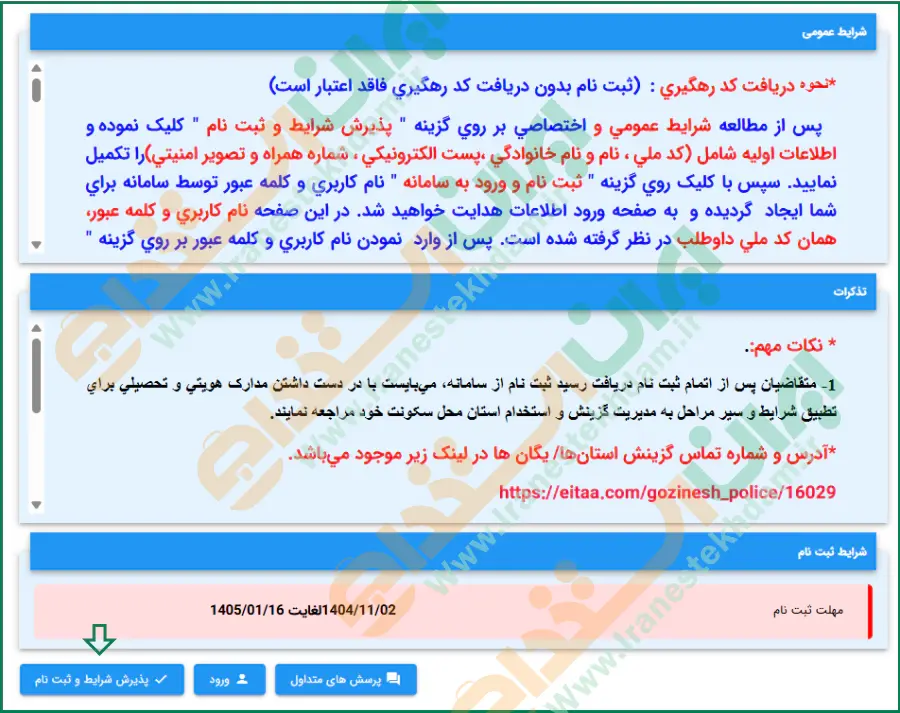 راهنمای تصویری ثبت نام آزمون استخدام افسری محصل نیروی انتظامی