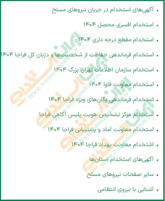 به منظور سهولت در ثبت نام آزمون استخدام افسری محصل، تیم ایران استخدام لینک مستقیم ورود به صفحه اصلی استخدام نیروی انتظامی را در انتهای صفحه قرار داده است.
