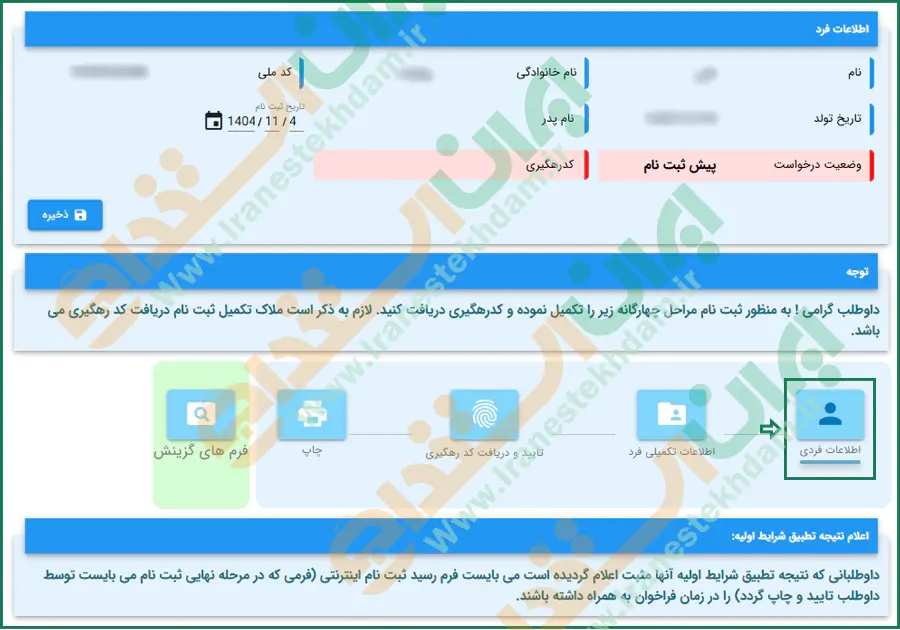 مرحله نهم: ثبت مشخصات متقاضی
